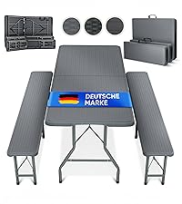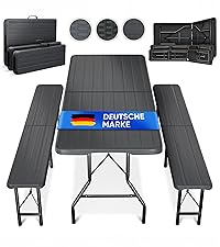 - ZUSAMMENKLAPPBAR & TRANSPORTABEL: Kein Platz? Kein Problem! Unser Grilltisch Set perfektioniert die platzsparende Lagerung, die zwei Bänke und der Tisch sind zusammenklappbar und dank der handlichen Tragegriffe leicht zu transportieren.